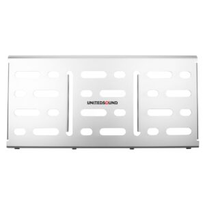 Плоска поверхня для рівного закріплення педалей; отвори, що дозволяють абсолютно будь-яке розташування кабелів, щоб не виникло проблем з комутацією педалей будь-якої конфігурації роз’ємів, що до того ж забезпечують мінімальну вагу при збереженні максимальної жорсткості конструкції та стійкості до деформації; низький профіль для зручності використання, пружні ніжки із зносостійкої гуми – тут передбачено все.